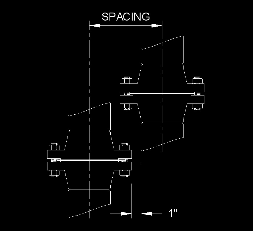 Pipe Spacing - Flange to Pipe for ANSI Class 150 to 150