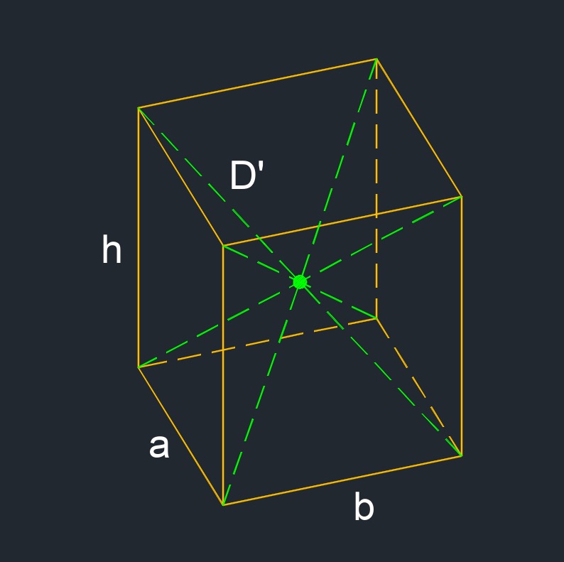 | \( D' \;=\; \sqrt { 2\cdot a^2 + h^2 } \) | ||